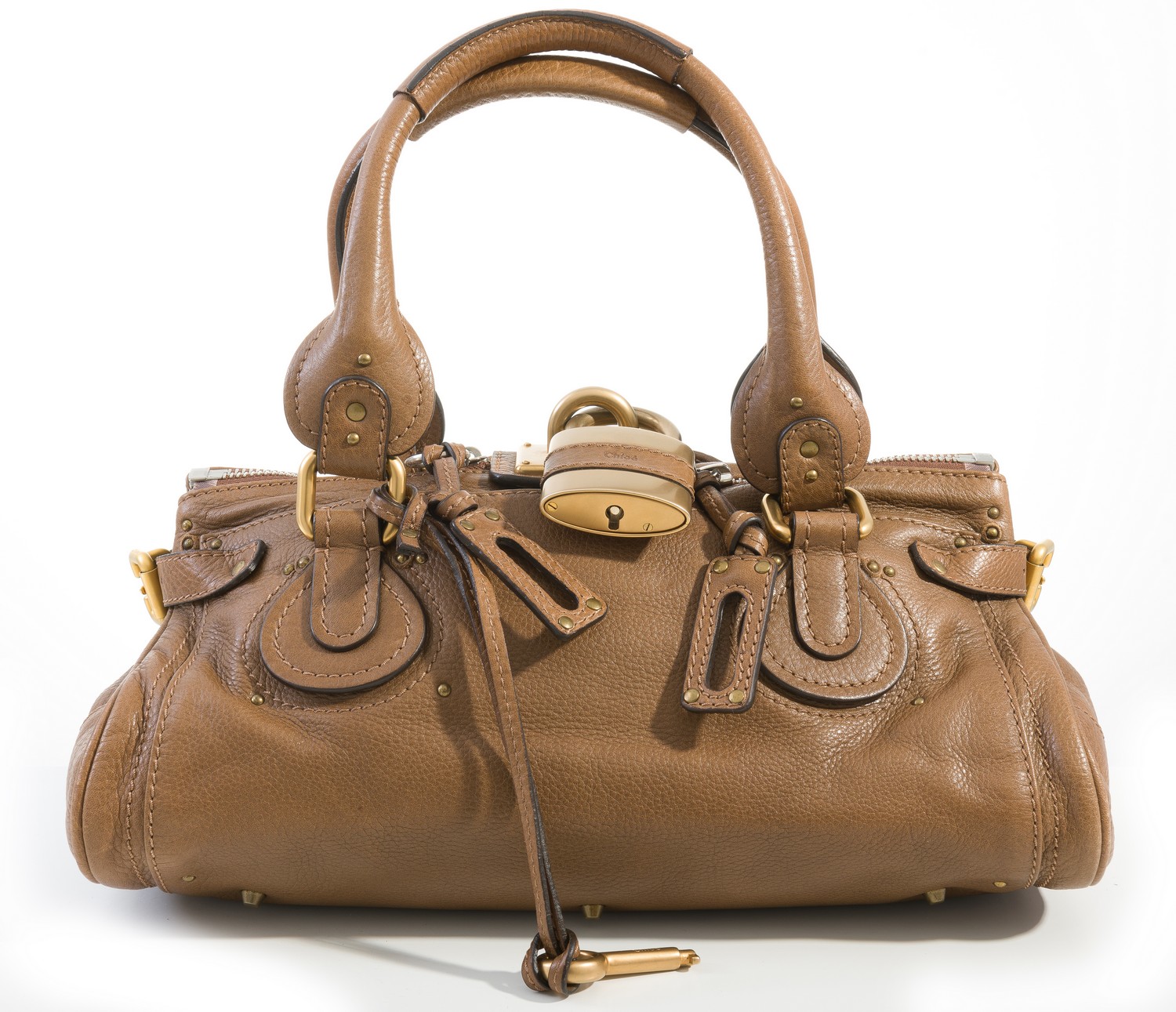 Styled in taupe leather with brushed gold metal hardware, reference number 03-10-51-5276, lock and key included, 17 x 35 x 20cm.