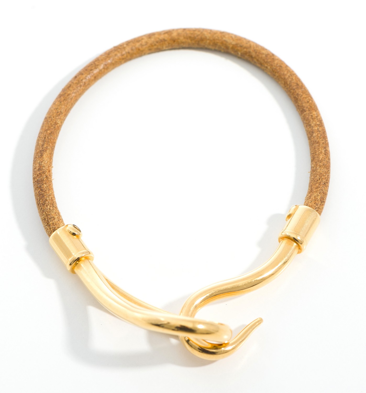 Styled in tan calf leather with gold metal hardware, length 18cm, boxed.