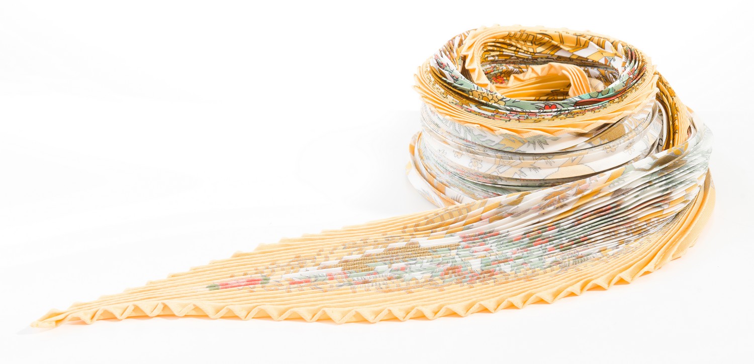 The 'Decoupages' design by Anne Rosat on a yellow background, 130cm in length, boxed.