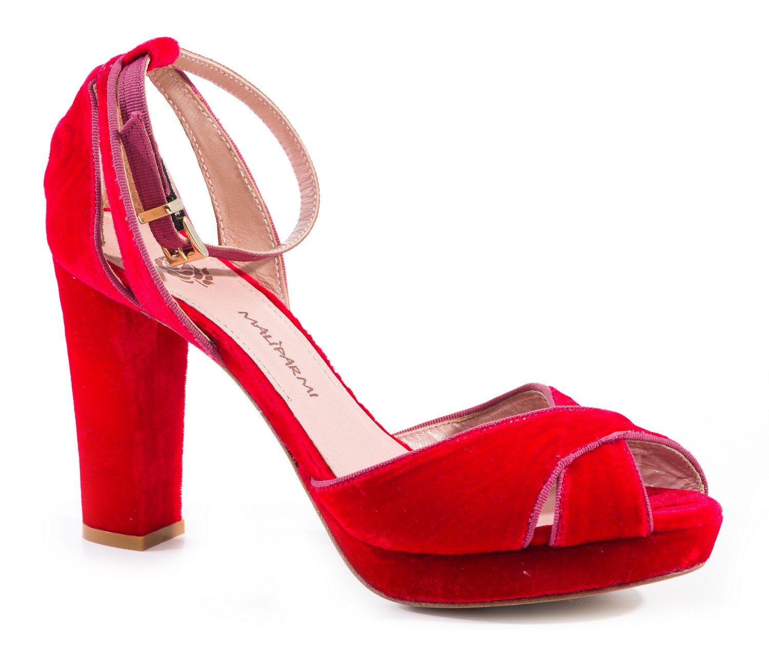 Styled in red velvet with grosgrain trim, size 39.5,