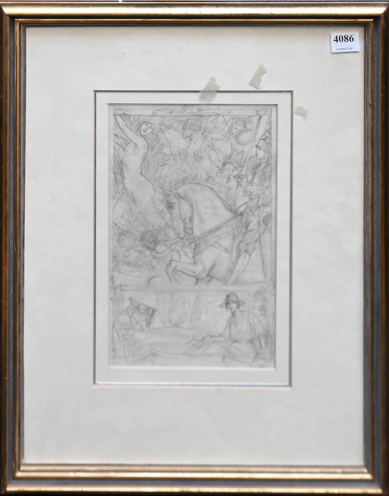 ARTIST UNKOWN, (MYTHICAL SCENE), PENCIL ON PAPER, SIGNED INDECIPHERABLY LOWER LEFT, 23 X 15CM, FRAME SIZE: 44 X 45CM