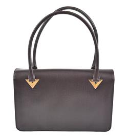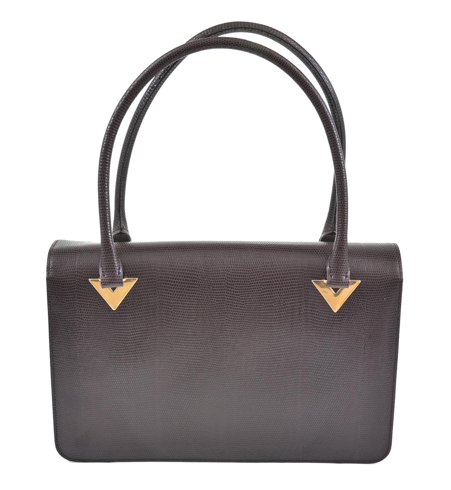 Styled in brown snakeskin leather with gold metal features, 18 x 29 x 8cm, boxed.