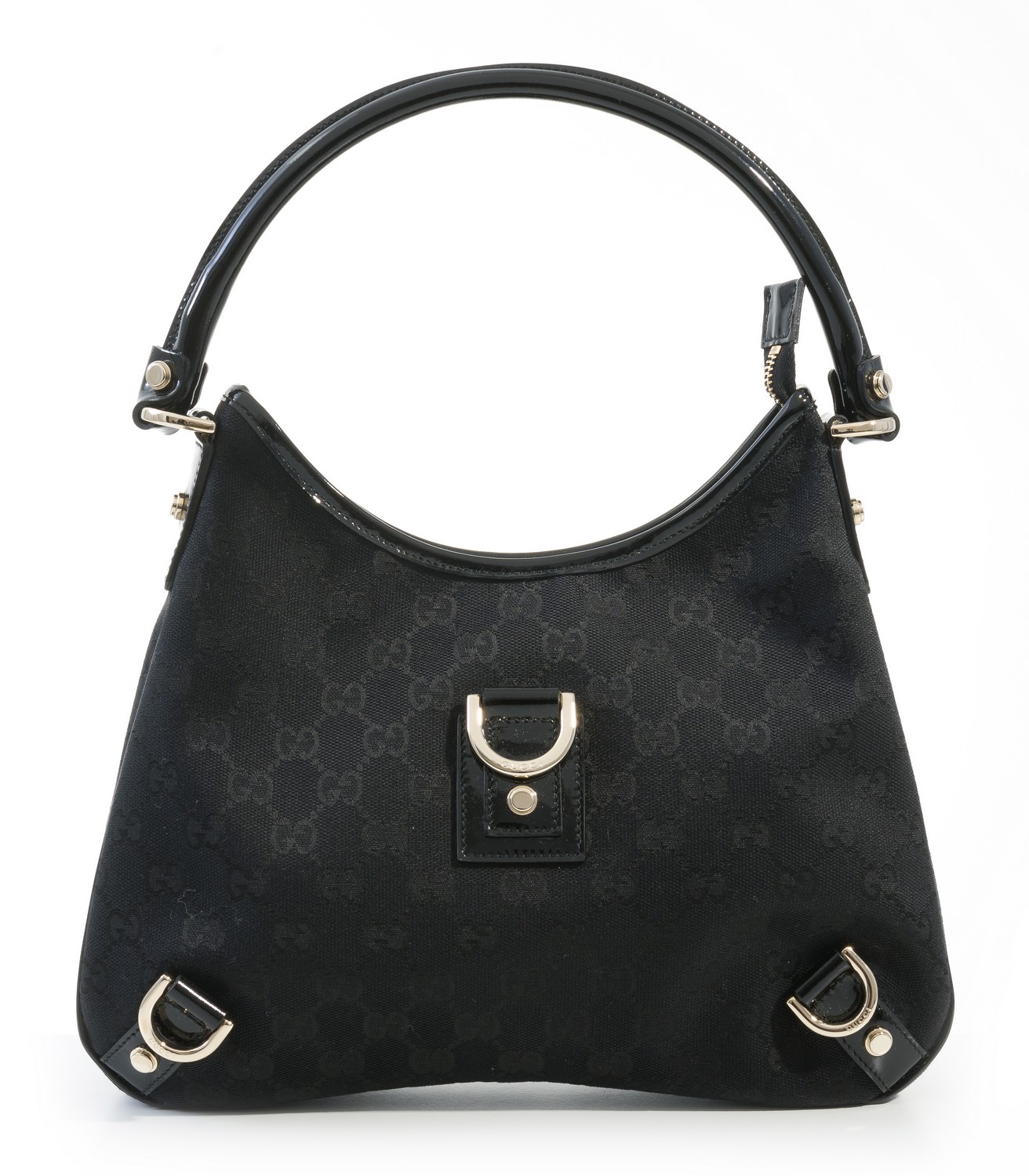 Styled in monogram canvas with black patent leather trim and silver metal hardware, 26 x 30 x 5cm .