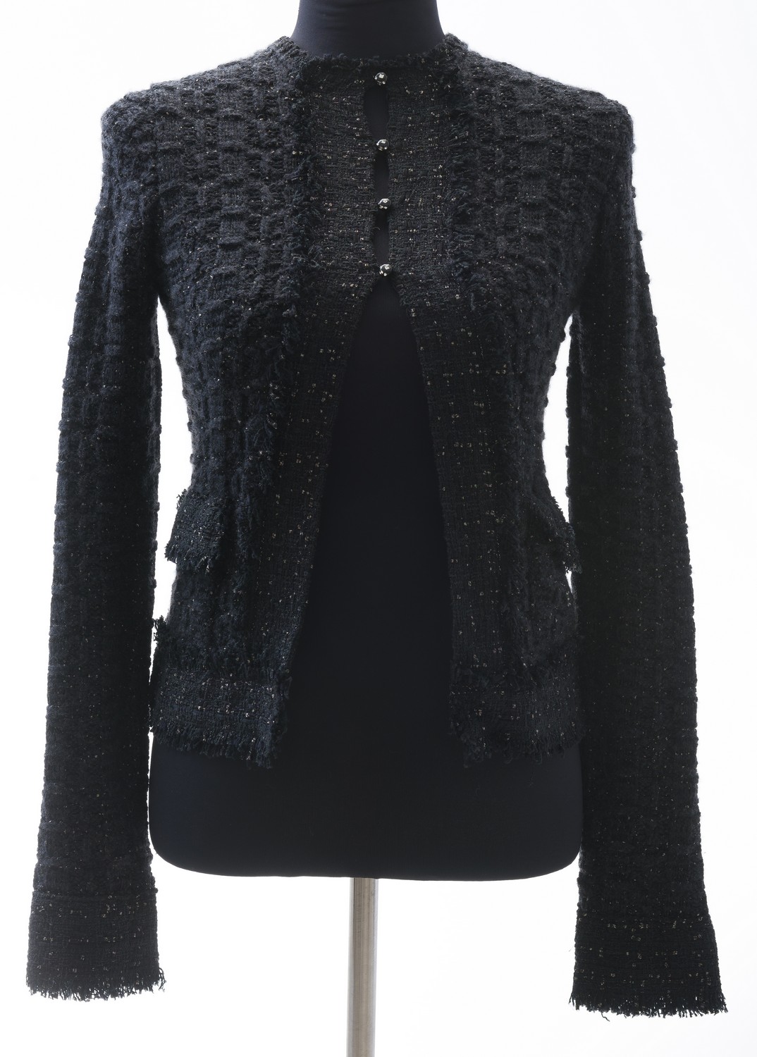 Styled in black cashmere blend, labelled size 36, original tag attached.