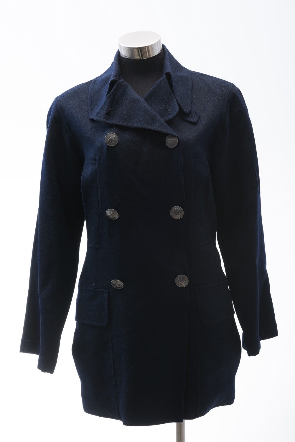 Styled in navy cashmere, with embellished buttons, labelled size S.