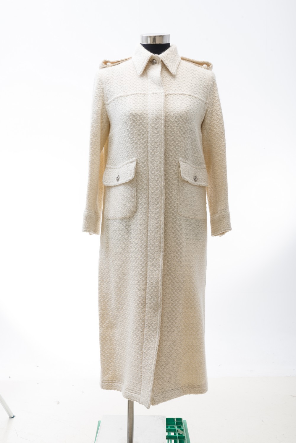 Styled in cream wool/angora blend, with embellished buttons, labelled size FR38.