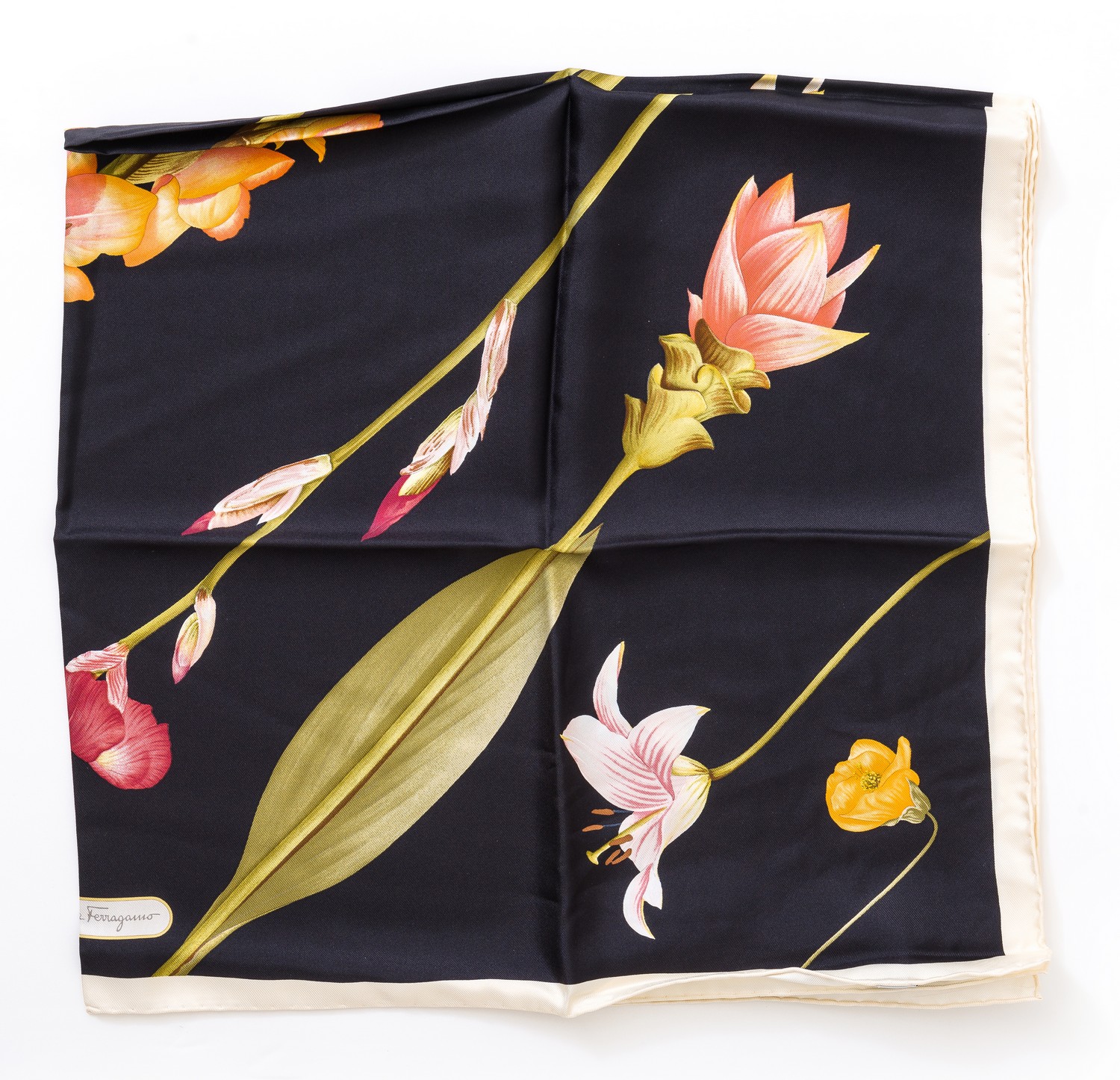 A SILK SCARF BY SALVATORE FERRAGAMO
