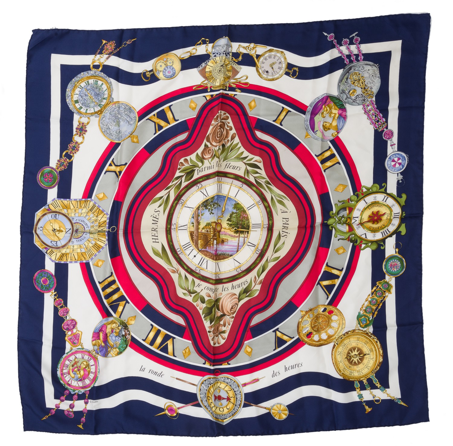The "Parmi les Fleurs je compte les Heures" design to a blue background, 90cm square.