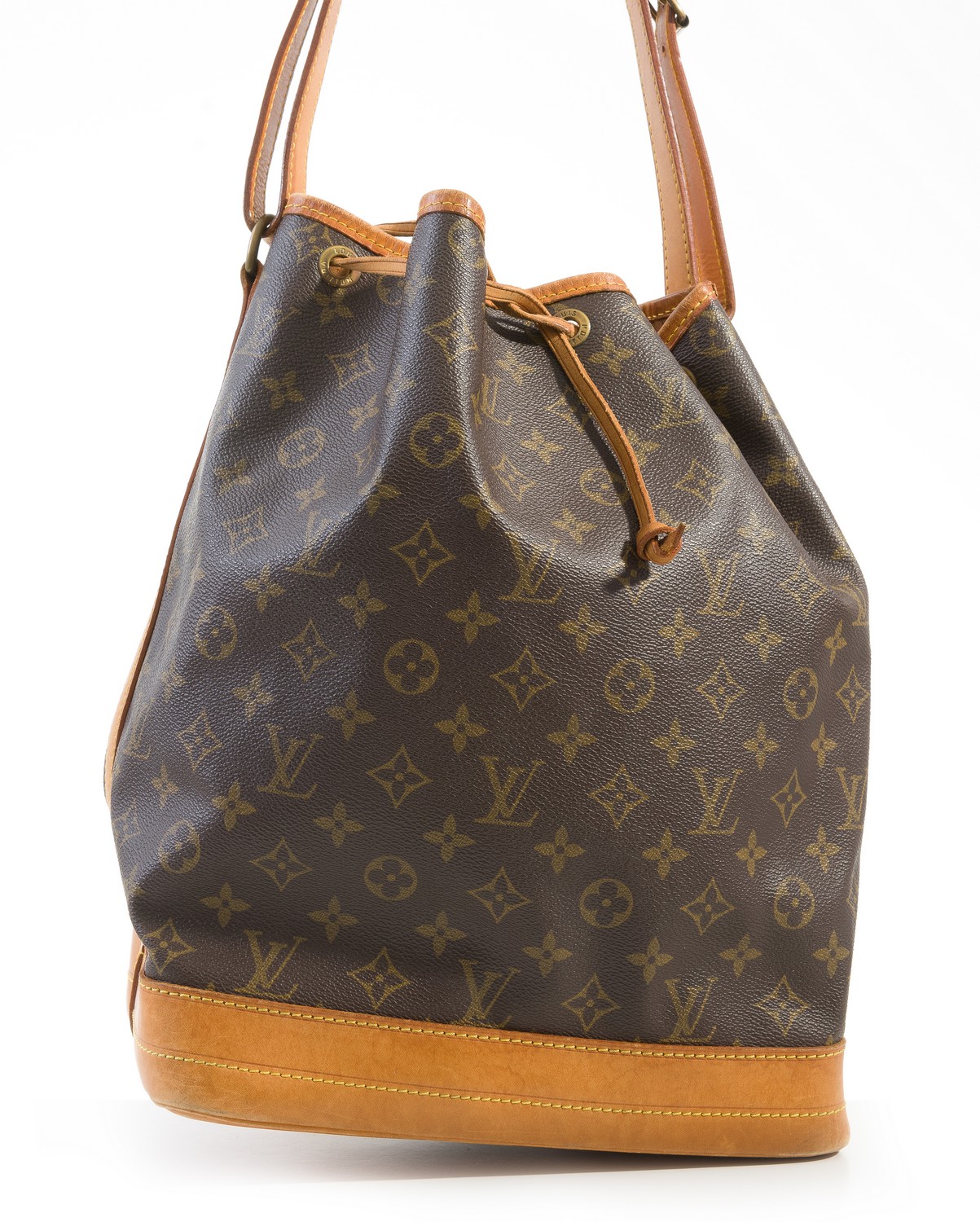 Styled in monogram canvas, with tan leather trim and gold metal hardware, M42224, 26 x 34 x 18.5cm.