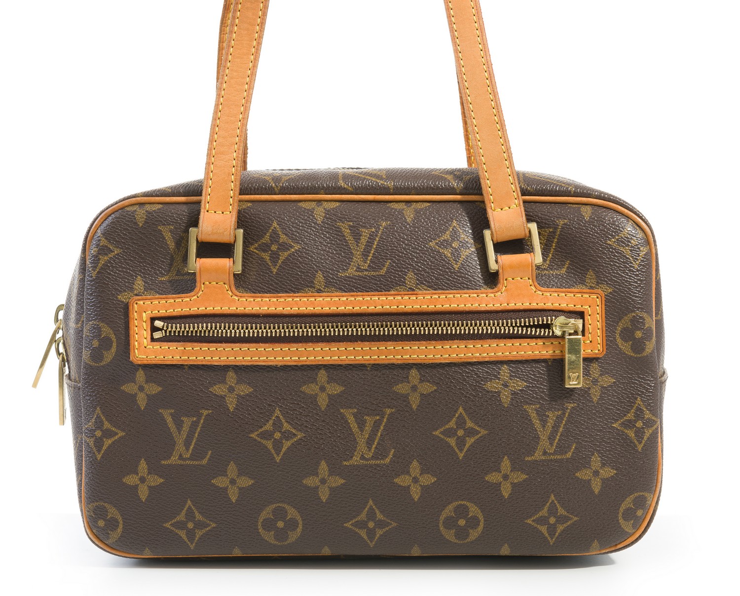 Styled in monogram canvas with tan leather trim and gold metal hardware, M51182, 18 x 27.5 x 12cm.
