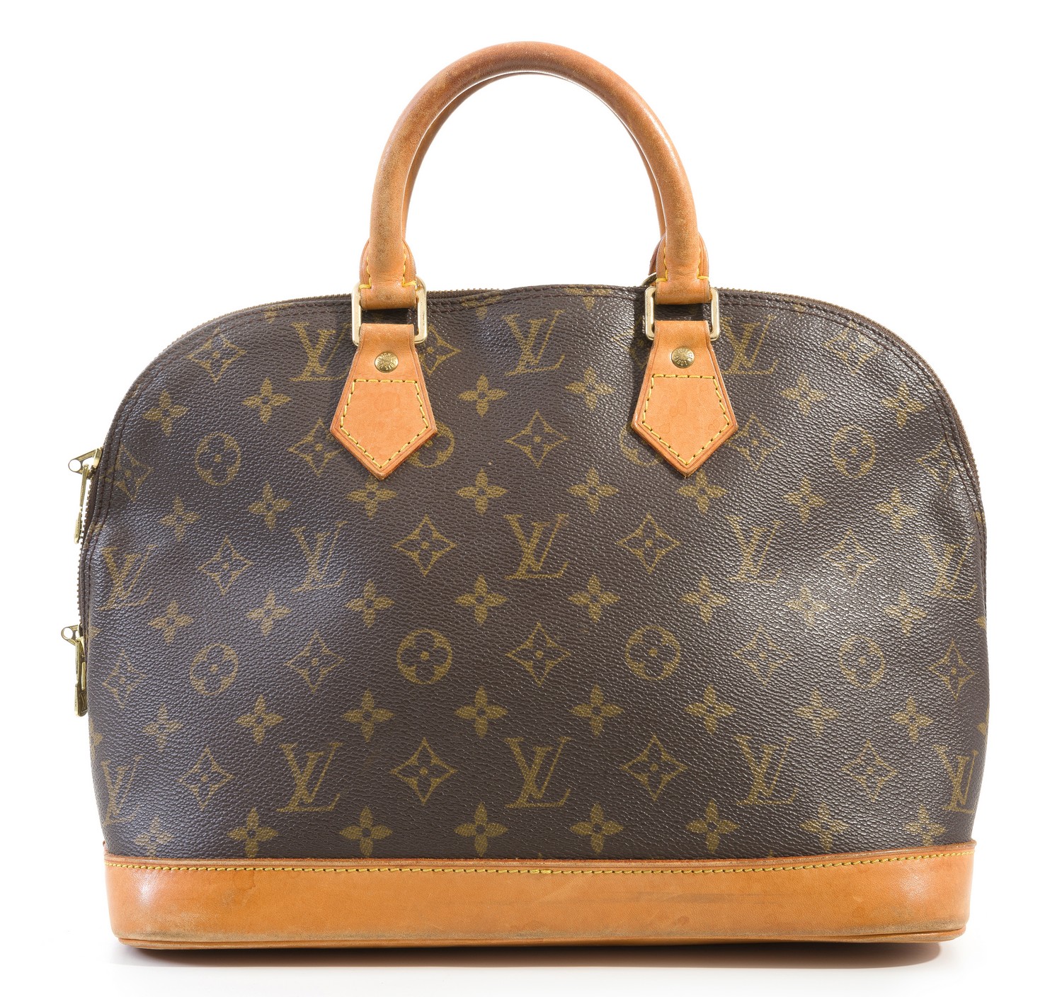 Styled in monogram canvas with tan leather trim and gold metal hardware, M53151, 24 x 32 x 15.5cm.