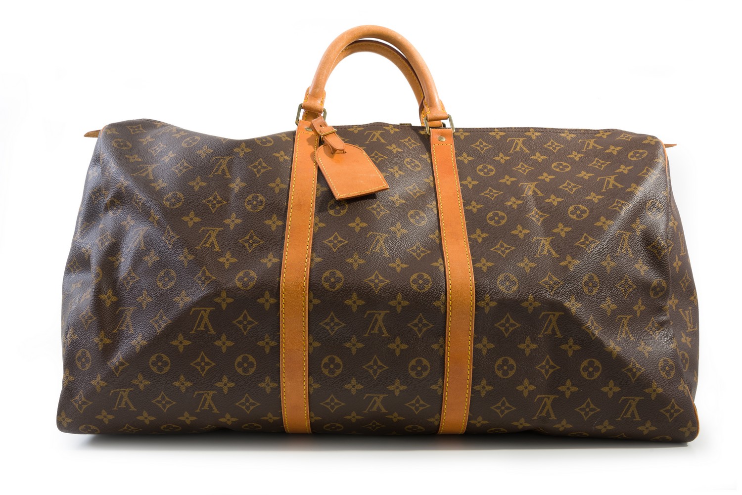Styled in monogram canvas with tan leather trim and gold metal hardware, M41426, 20 x 50 x 22cm.