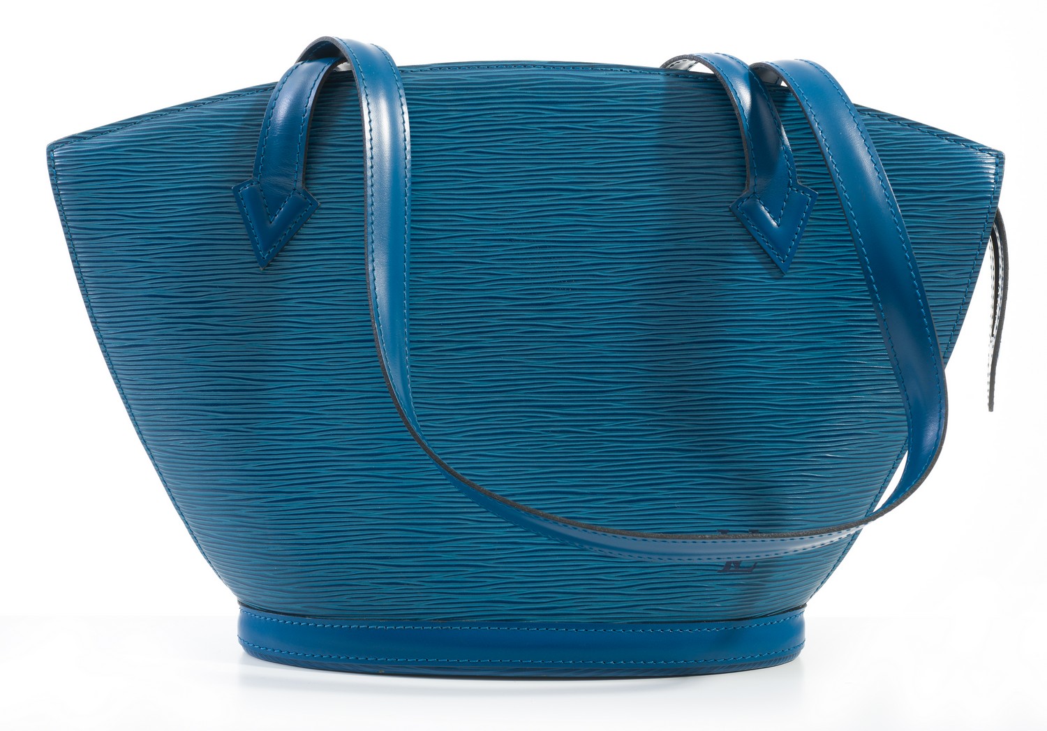 Styled in blue Epi leather with gold metal hardware, M52272, 24 x 38 x 10cm.
