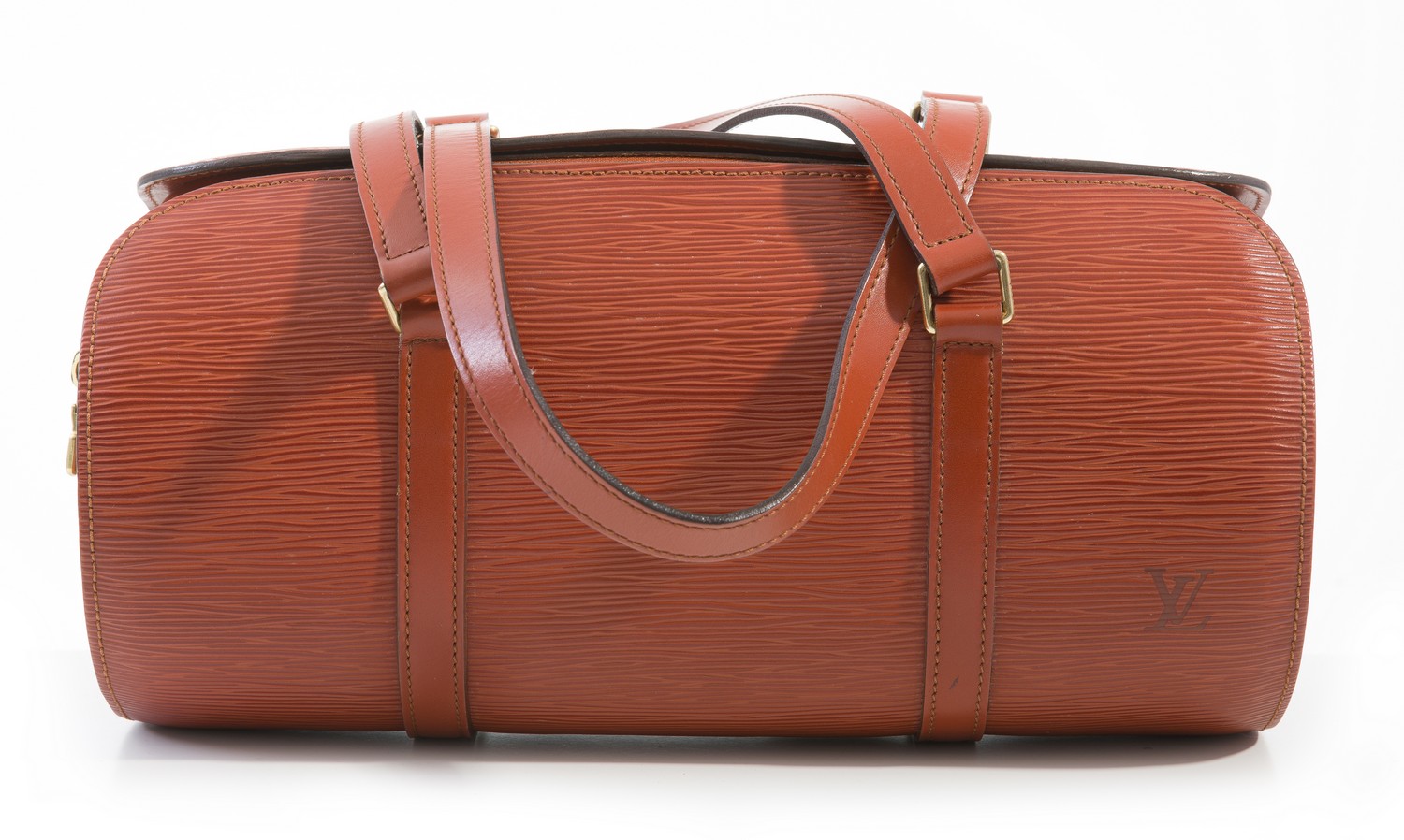 Styled in tan Epi leather with gold metal hardware, 16 x 31cm.