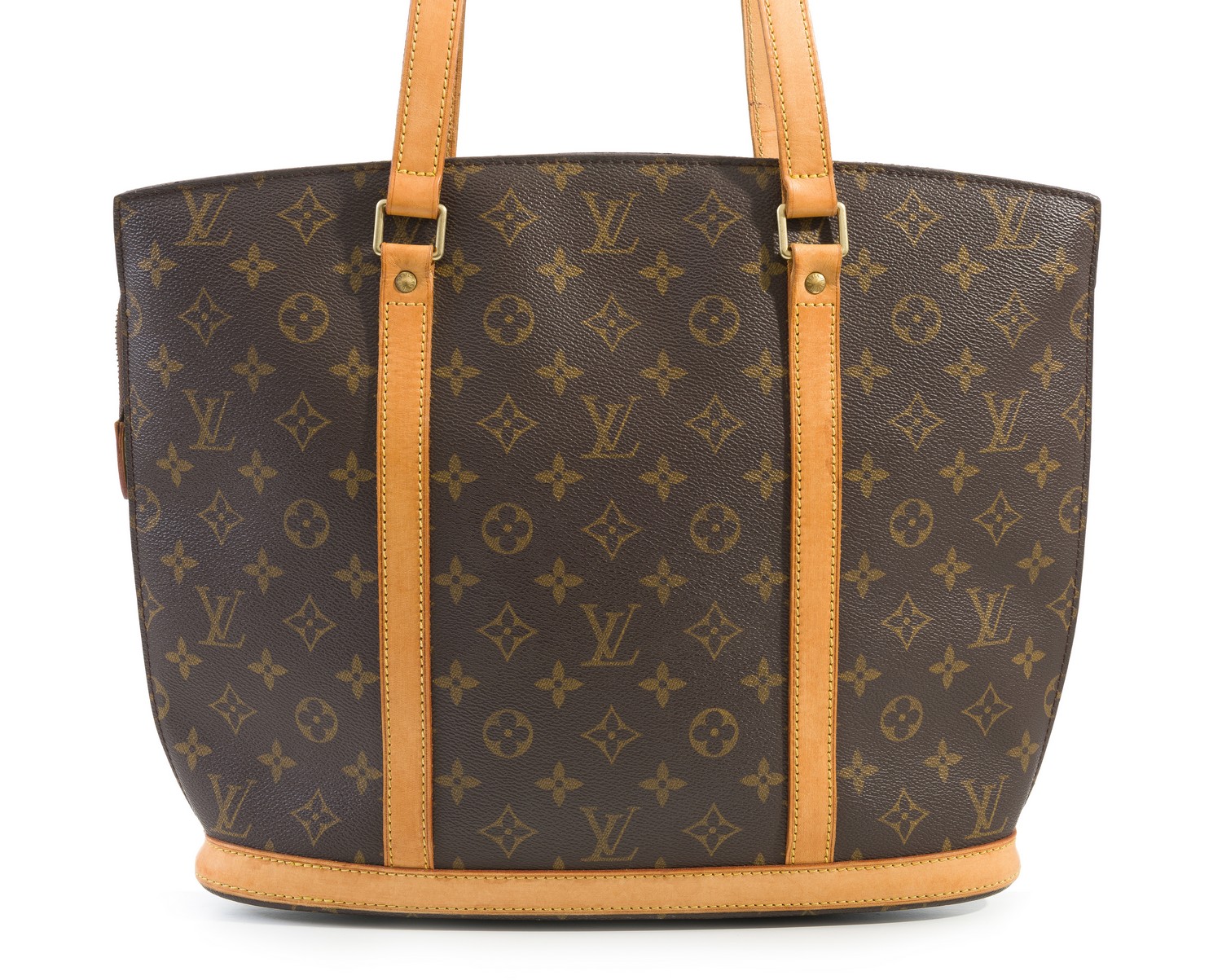 Styled in monogram canvas with tan trim and gold metal hardware, M512102, 40 x 31 x 11cm.