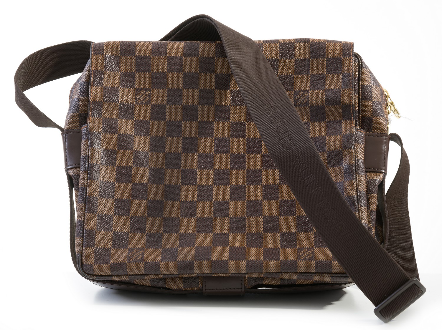 Styled in Damier Ebene canvas wit brown canvas strap and gold metal hardware, M45255, 24 x 28 x 9cm.