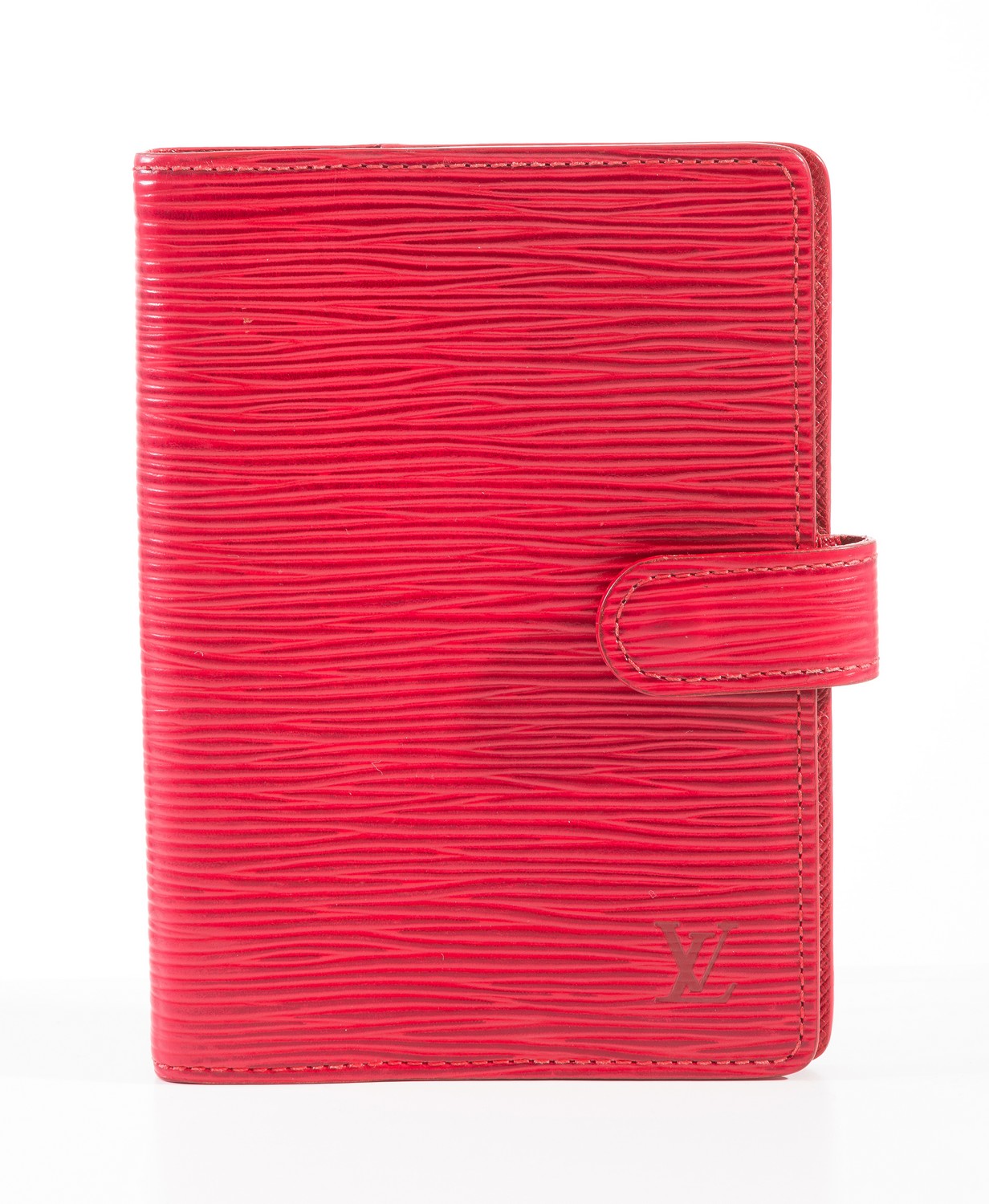 Styled in red Epi leather, 14.5 x 10.5cm.