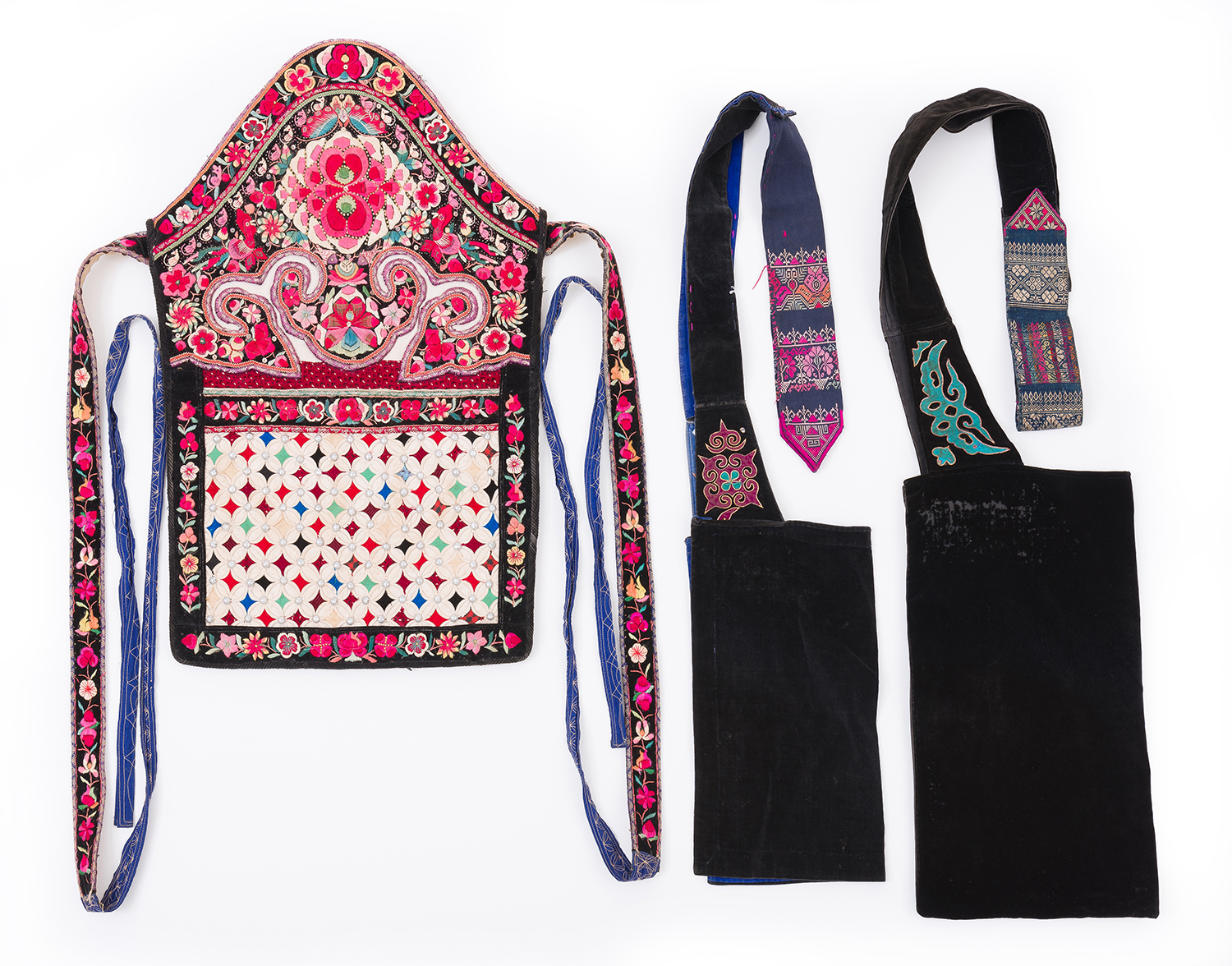 A SOUTHERN CHINESE BAI MINORITY BABY CARRIER TOGETHER WITH YI MINORITY APRON PANELS