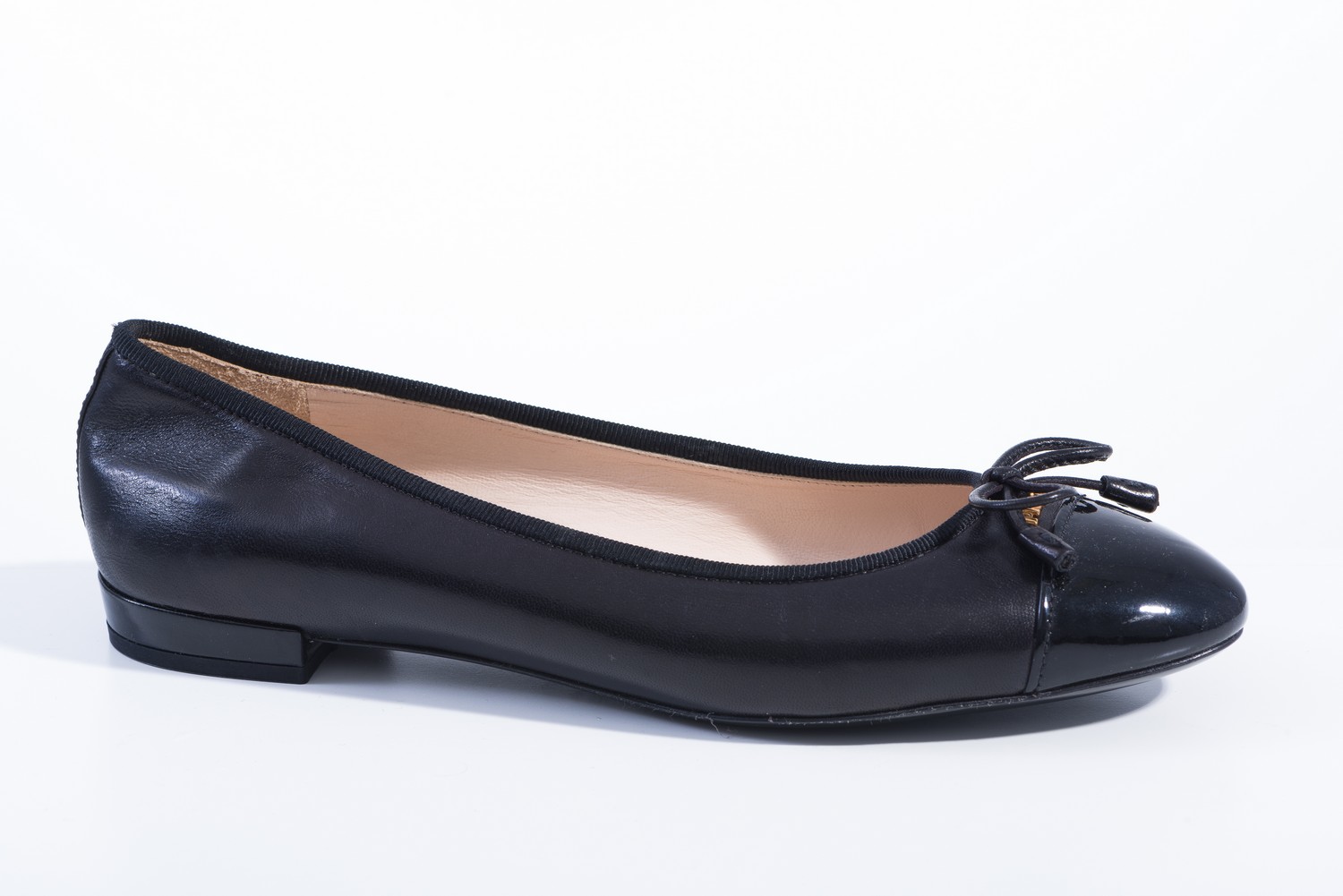 Styled in black leather and patent, labelled size 36.5, boxed.