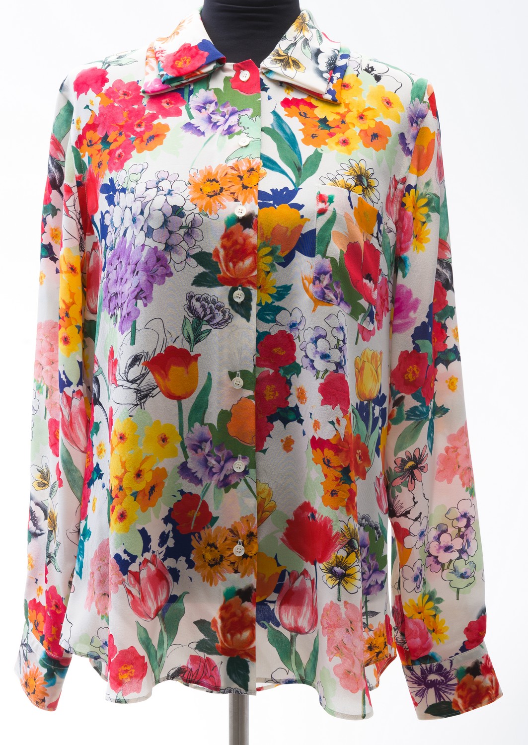 Styled multicoloured silk, labelled size IT48, original tags attached.