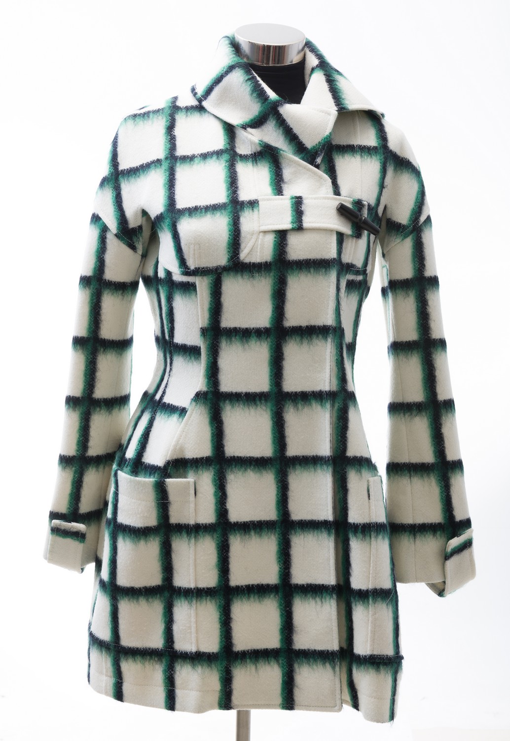 Styled in white wool blend with check, labelled size FR38.