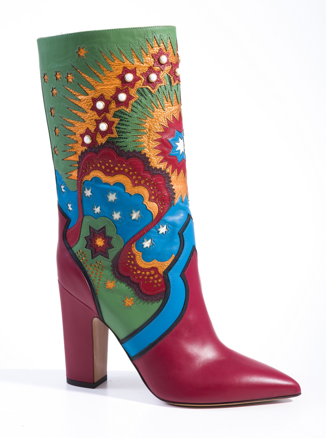 Styled in multicoloured leather with red toe and heel, labelled size 40.