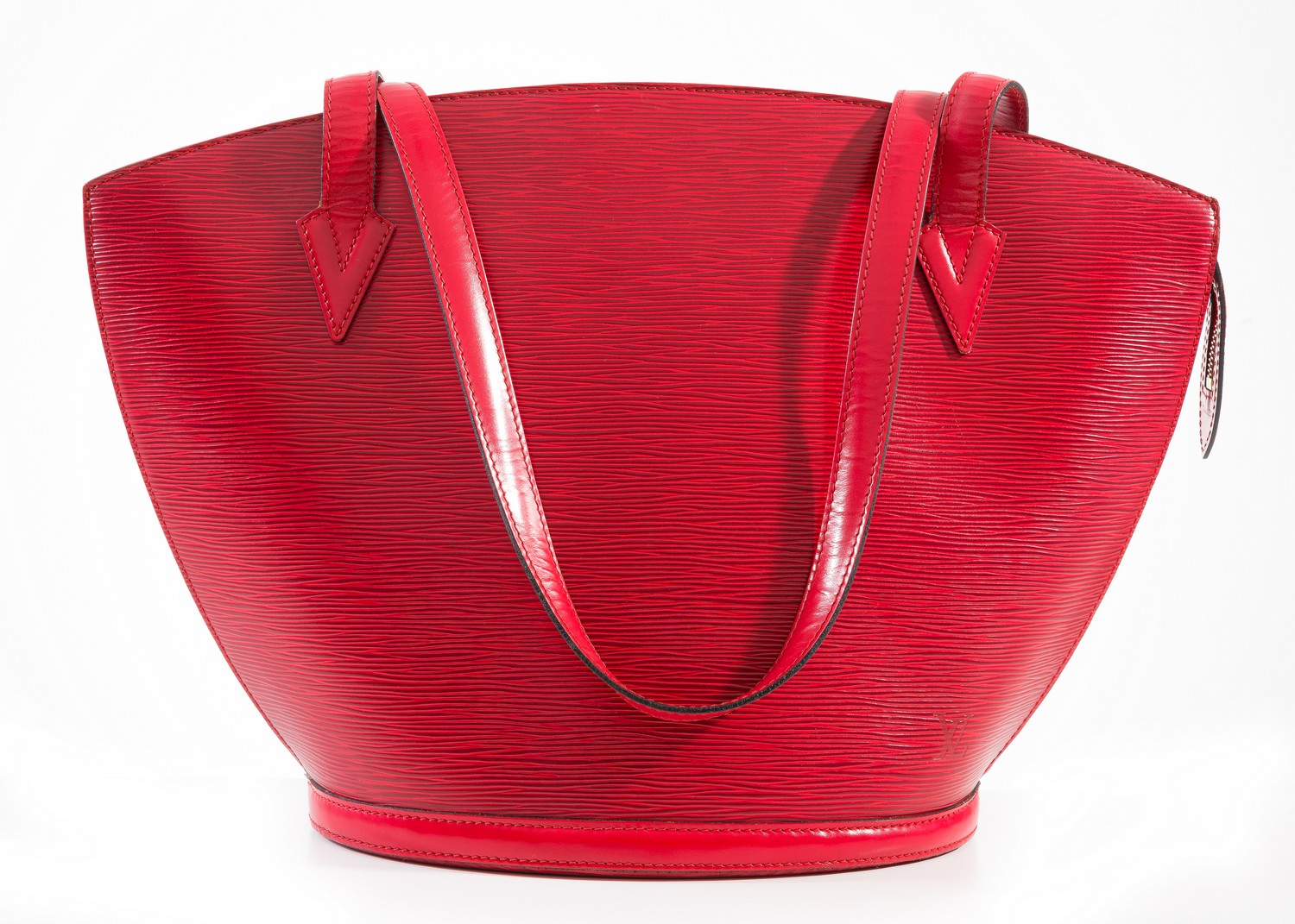 Styled in red Epi leather with gold metal hardware, M52262, 30 x 44.5 x 17cm.