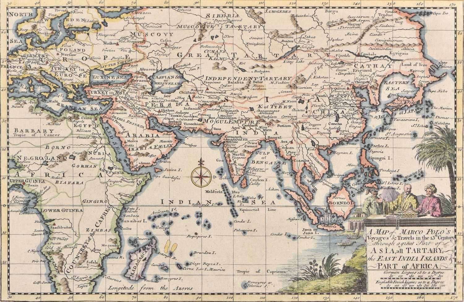 MAP OF MARCO POLO'S VOYAGES & TRAVELS IN THE 13TH CENTURY