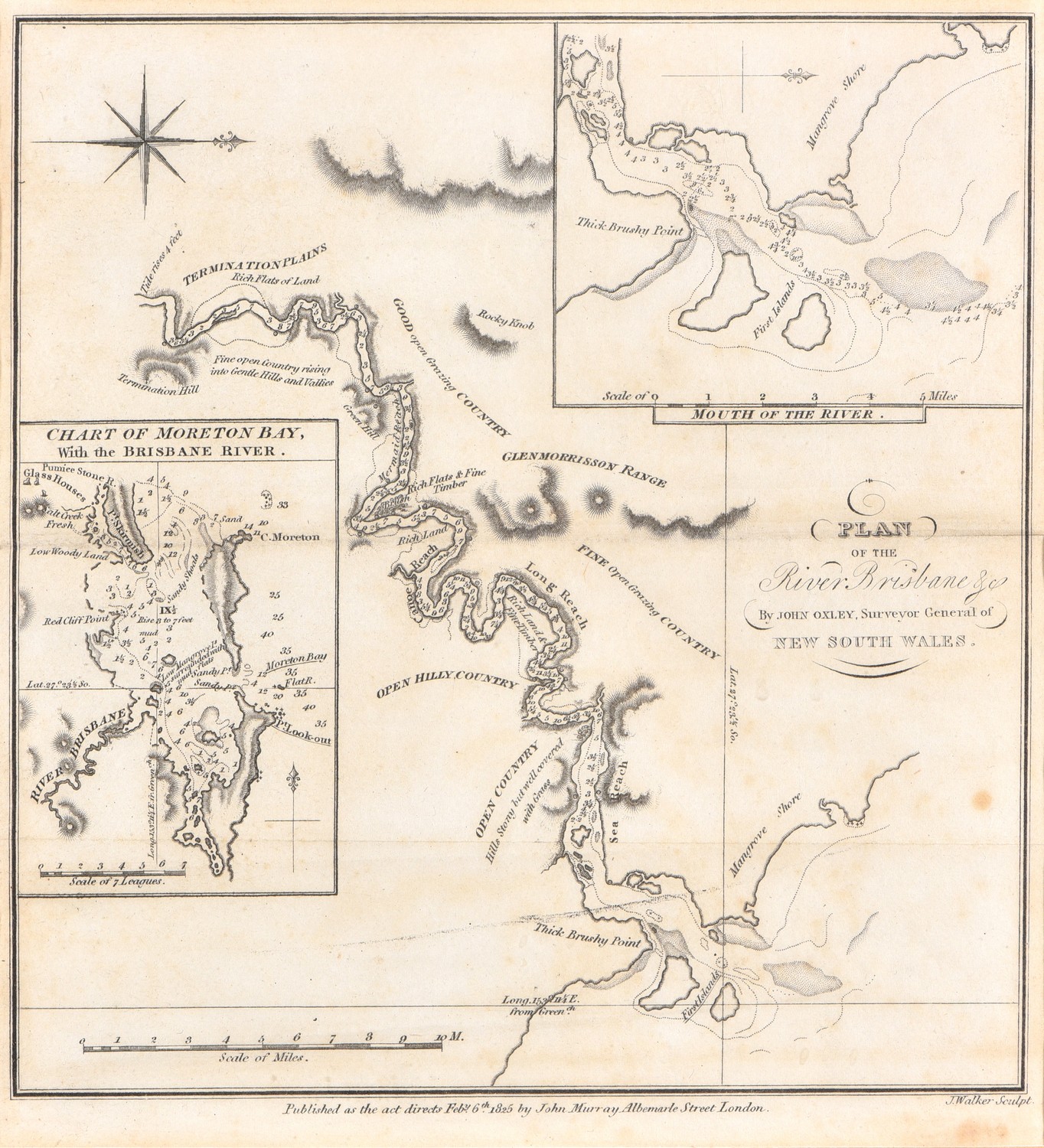 The engraving depicting the Chart of Moreton Bay with the Brisbane River.