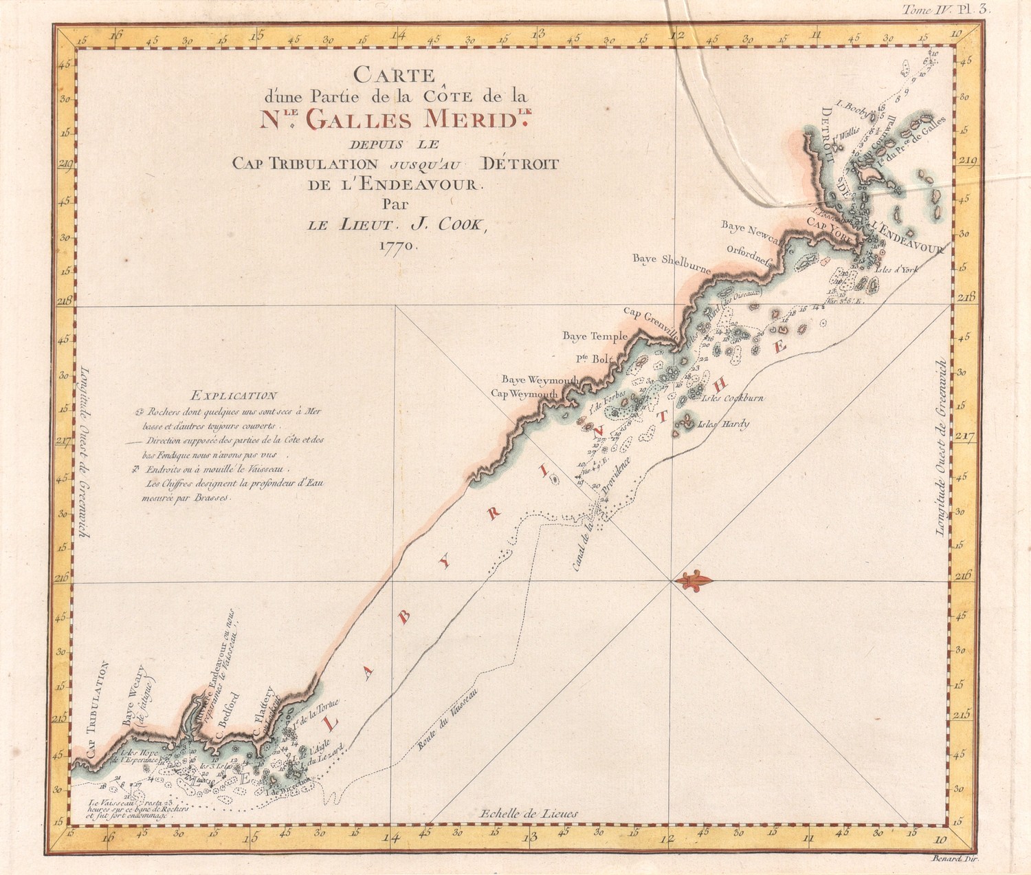 CARTE D'UNE PARTIE DE LA COTE DE LA N.LE GALLES MERID.LE DEPUIS LE CAP TRIBULATION, JAMES COOK, PARIS, LATE 18TH CENTURY