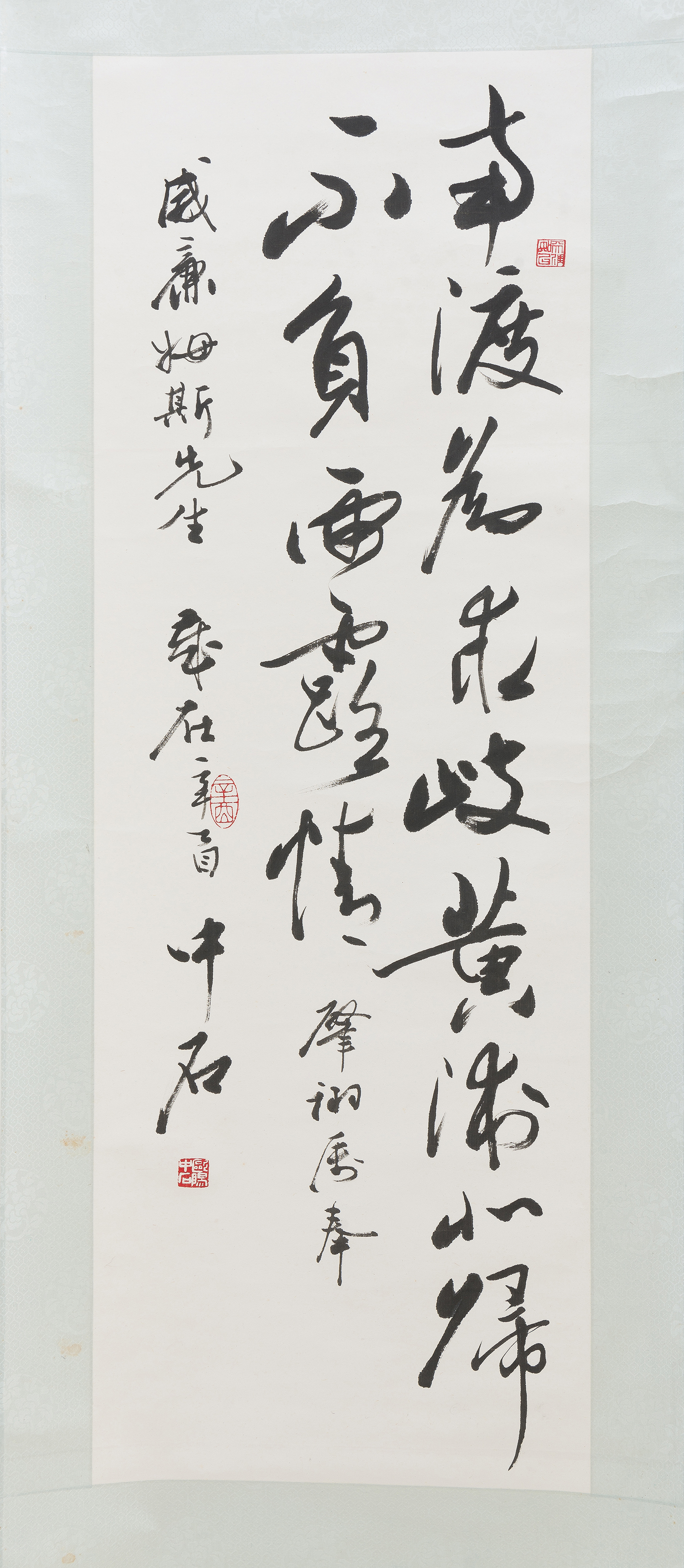 Ouyang Zhongshi is the director of the Chinese calligraphers association, and an associate professor in philosophy at the Capital Normal University in Beijing, China. In 2013 Zhongshi won the first Confucious art prize. He is recognized as one of the foremost calligraphers in China of the modern era.