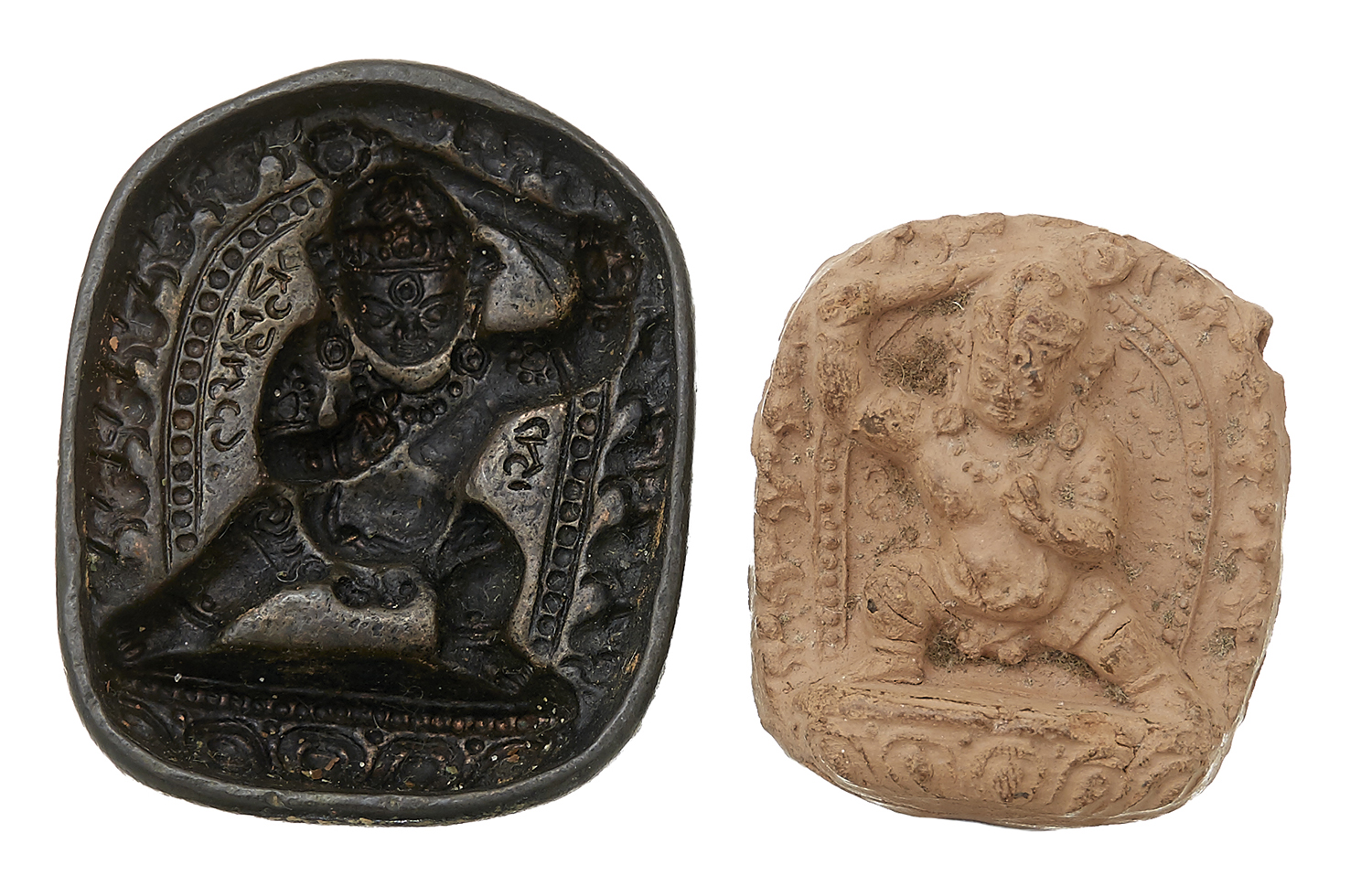 A RARE TIBETAN BRONZE TSA-TSA MOULD OF DHARMAPALA