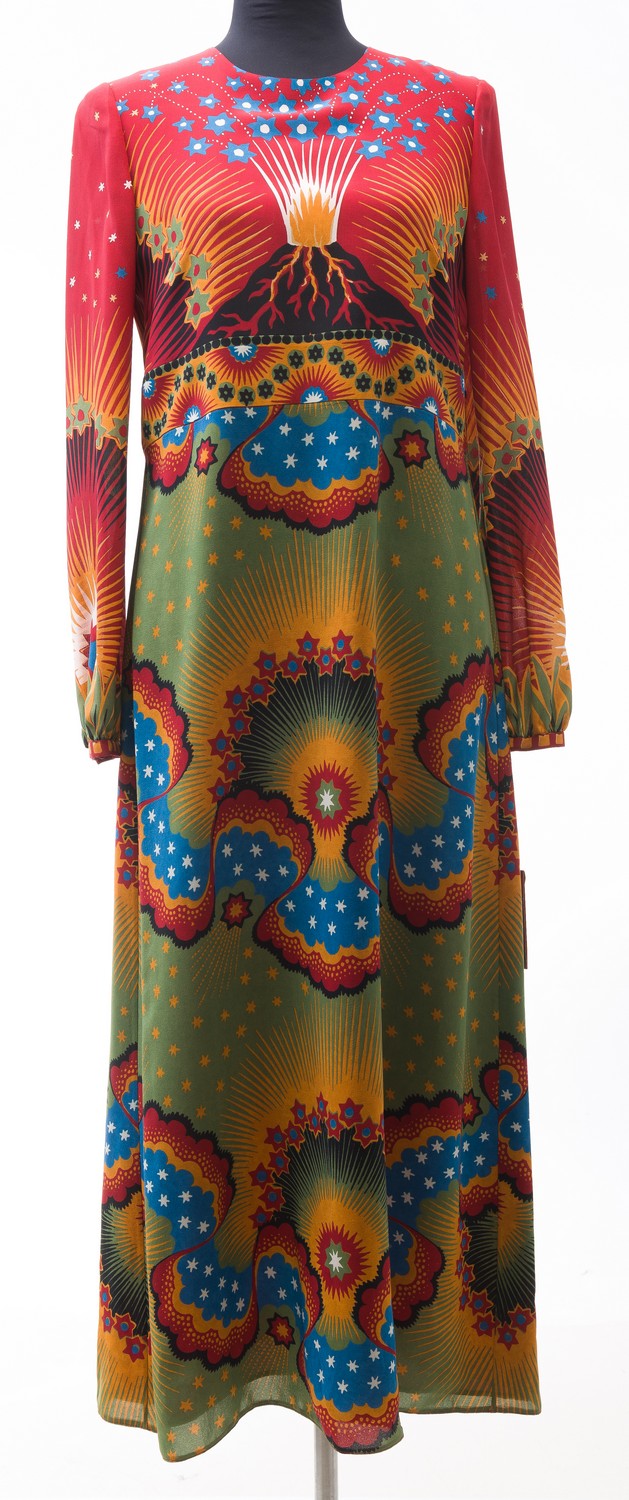 Styled in multicoloured silk, labelled size 42, original tags attached.