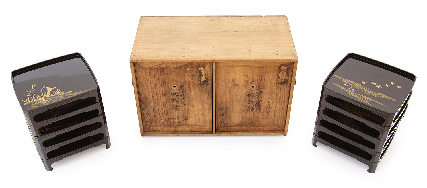 A SET OF 10 JAPANESE LACQUER SERVING TRAYS