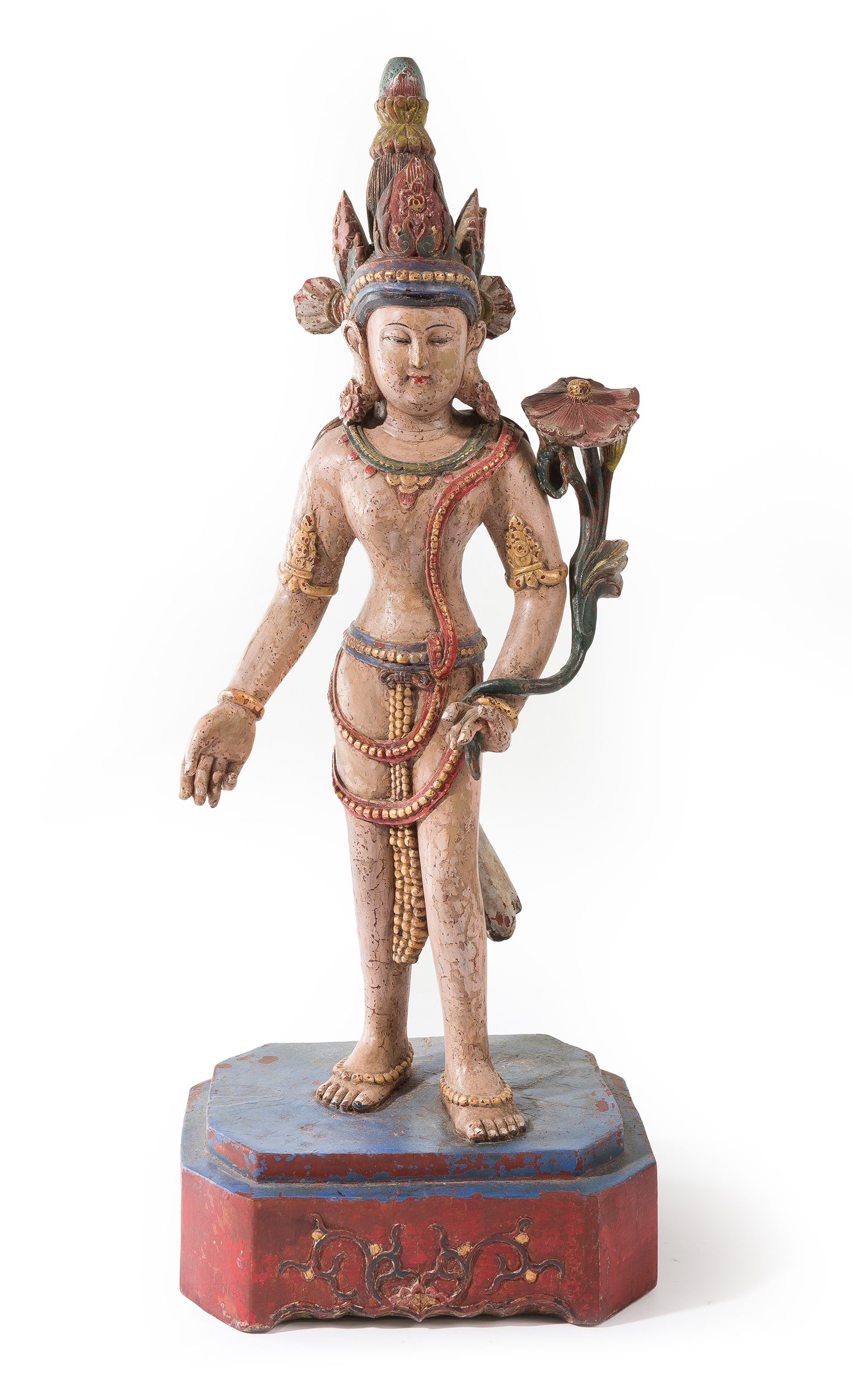 A TIBETAN POLYCHROME WOODEN FIGURE OF PADMAPANI