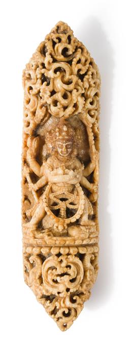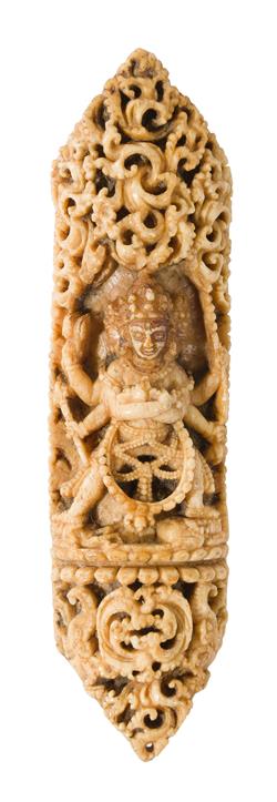 A TIBETAN BONE PLAQUE DEPCITING CHAKRASAMVARA