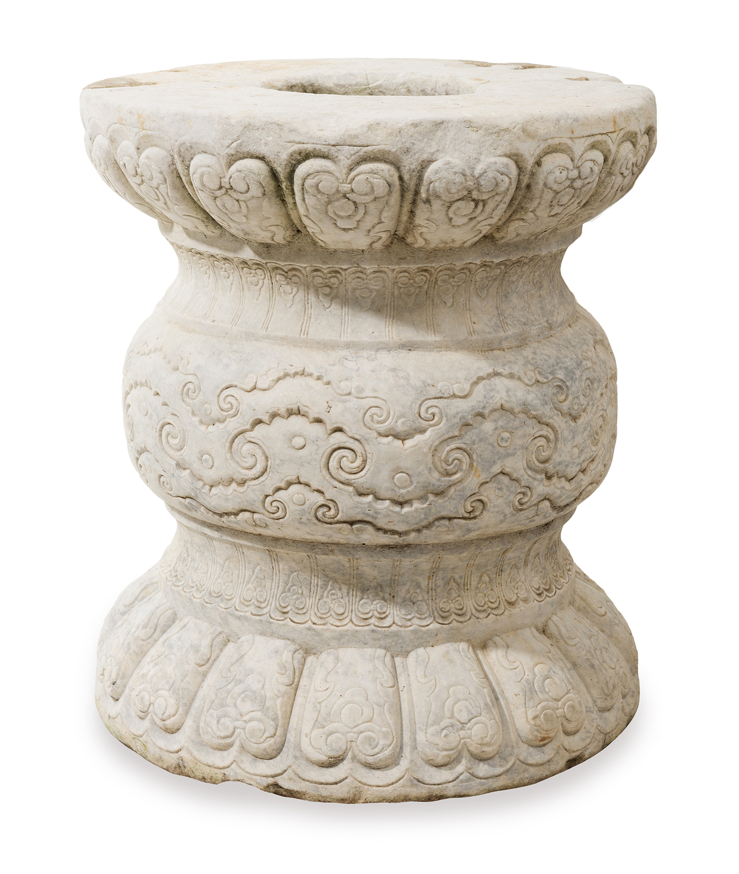 Of double louts form, with a central band decorated with scrolling cloud collars.