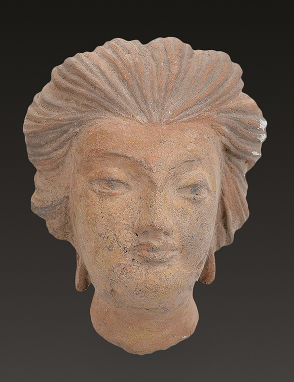 A LARGE GANDHARAN TERRACOTTA HEAD OF A NOBLEWOMAN CIRCA 3RD CENTURY