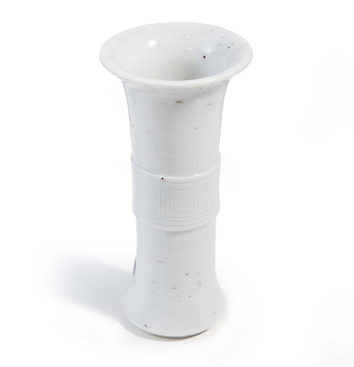 Of gu form, with a raised band to the centre with an incised keyfret design.