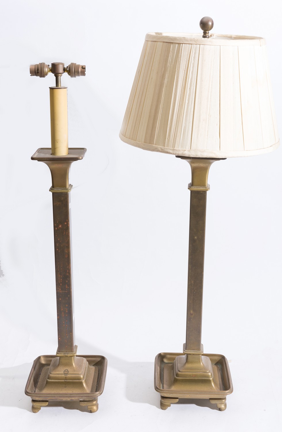 A PAIR OF COLUMNAR BRONZED LAMPS