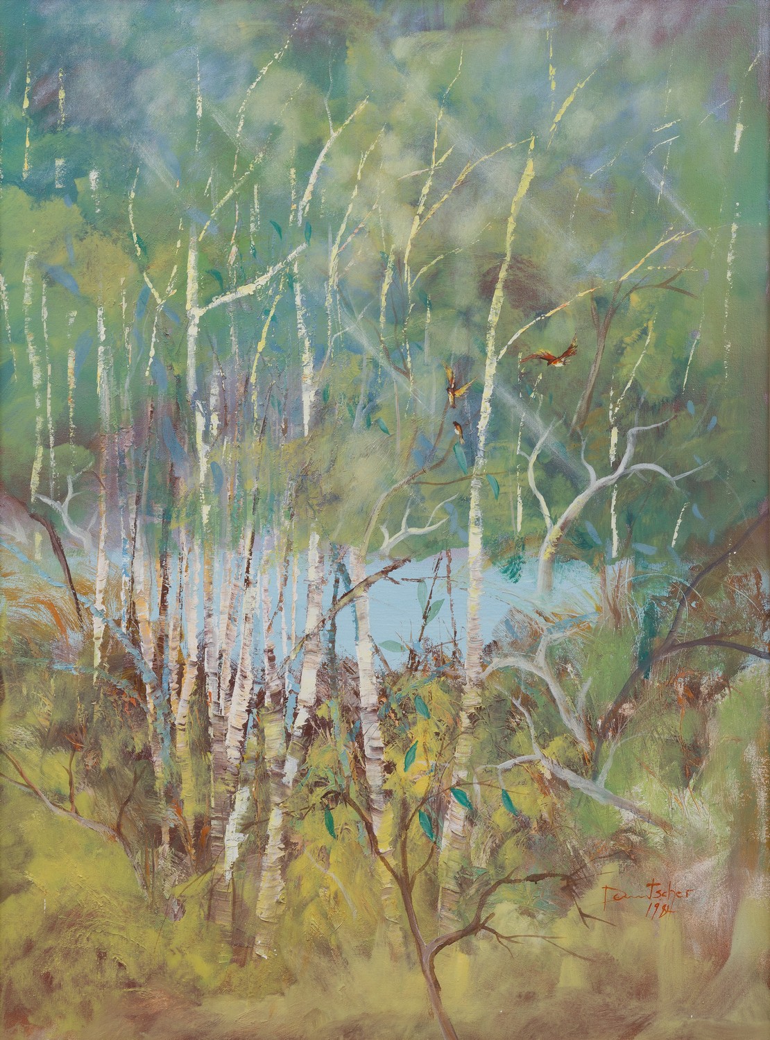 STEVEN DEUTSCHER, SWAMP SCENE WITH BIRDS 1984, OIL ON CANVAS, 120 X 89CM