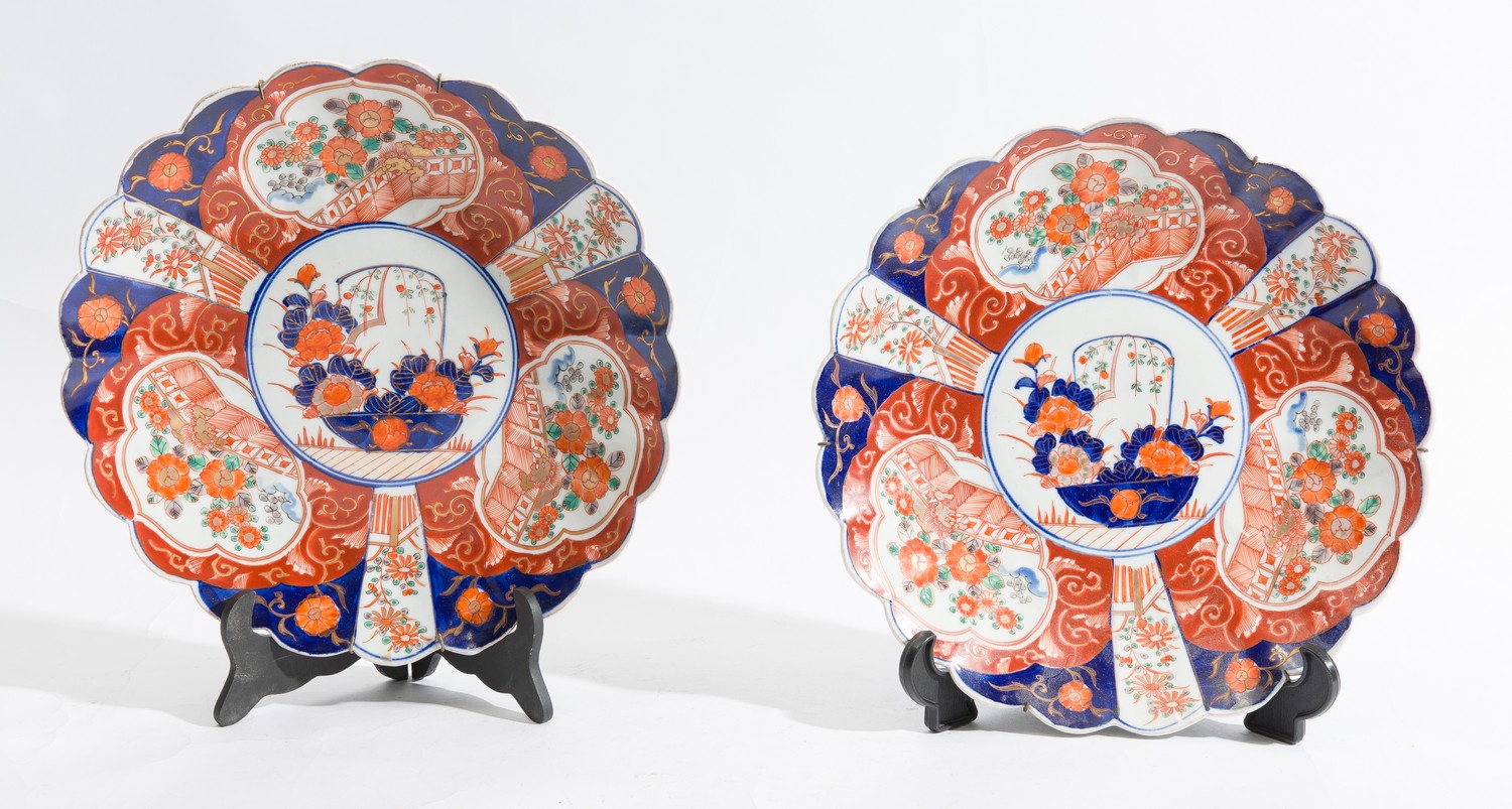 A PAIR OF SCALLOPED EDGED IMARI PLATES
