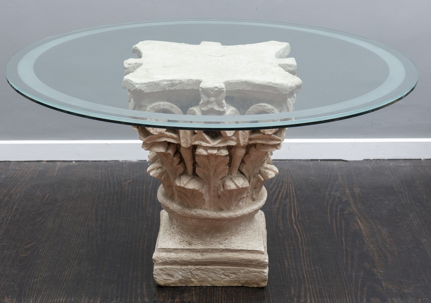This table is in good condition with no major faults. There are small scrathes to the glass.