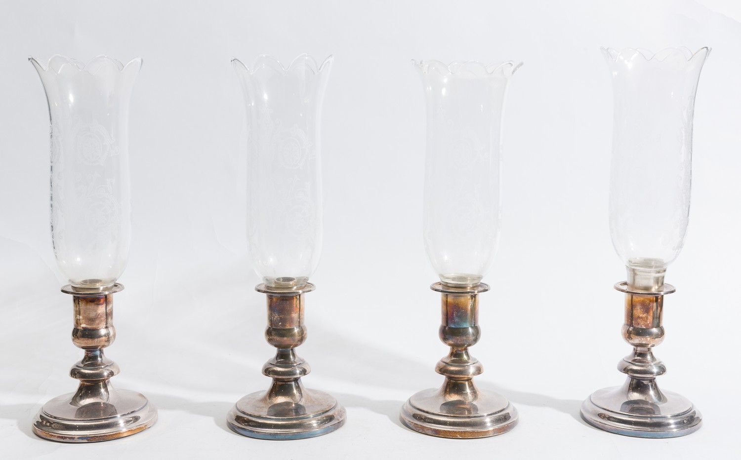 Condition very good with glass in great condition. One slight bend to silverplate lip on one lamp base.
