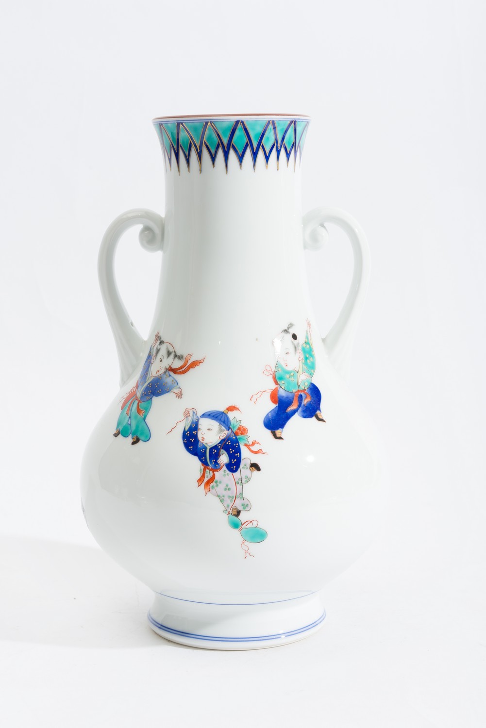 A DECORATIVE CHINESE VASE WITH DANCING CHILDREN