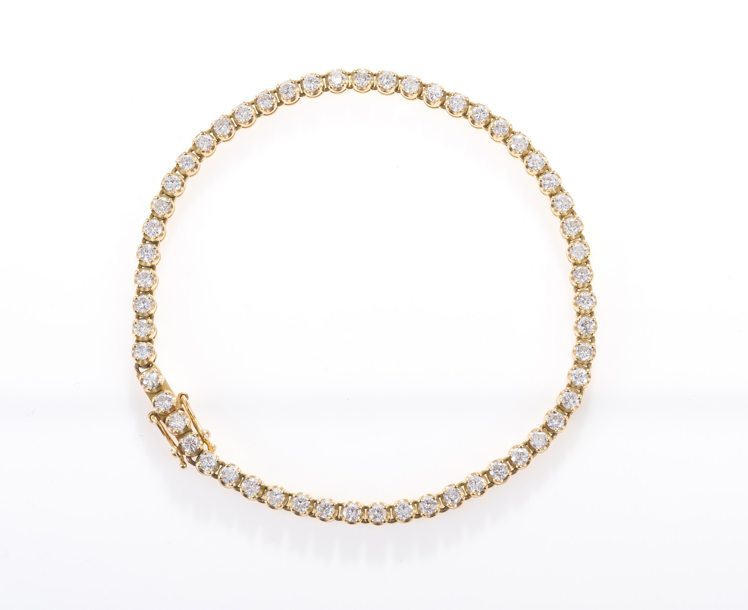 The bracelet presents in very good condition. All diamonds are secure in their settings and are of a good commercial colour and clarity grade. Gold surfaces show some minor wear. Clasp is operational and secure.