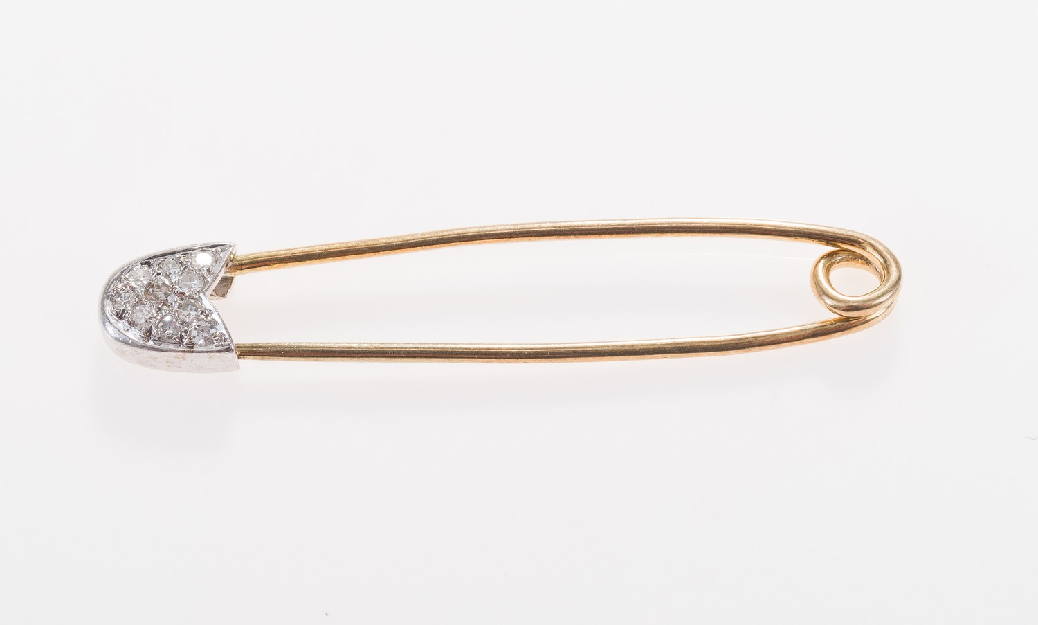 The brooch presents in good condition with minor wear evident. Diamonds are all secure in their settings. 1.7 gms.