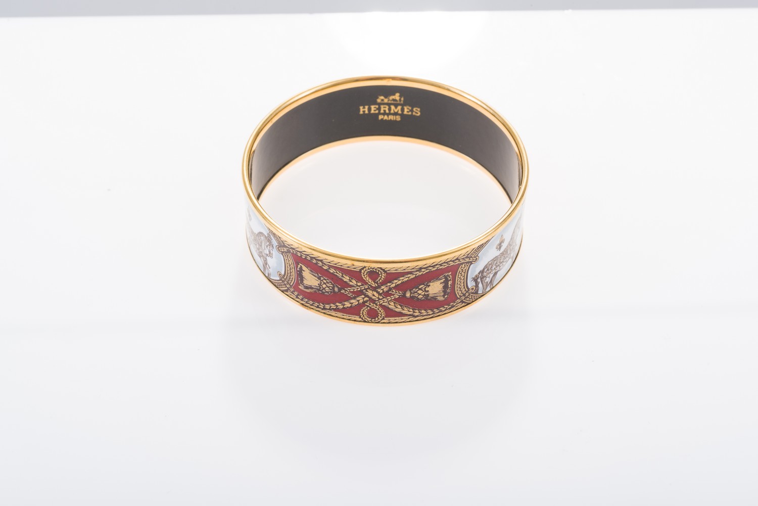 The bangle presents in good overall condition with all enamel intact and in good order. Minor wear evident to gold surfaces.