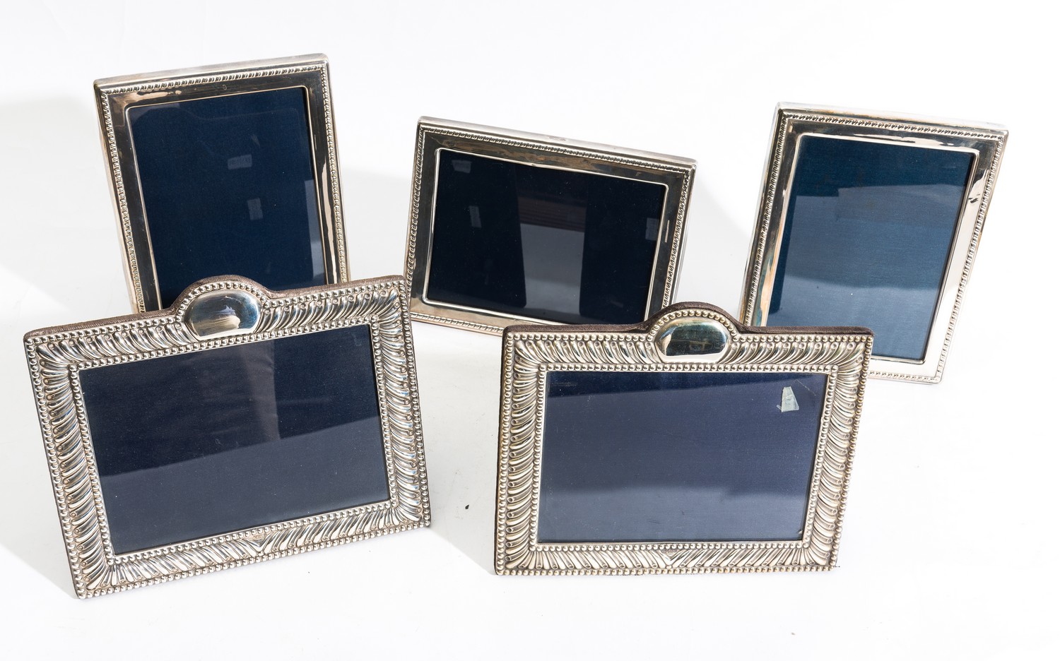 A COLLECTION OF FIVE STERLING SILVER PICTURE FRAMES (A/F)