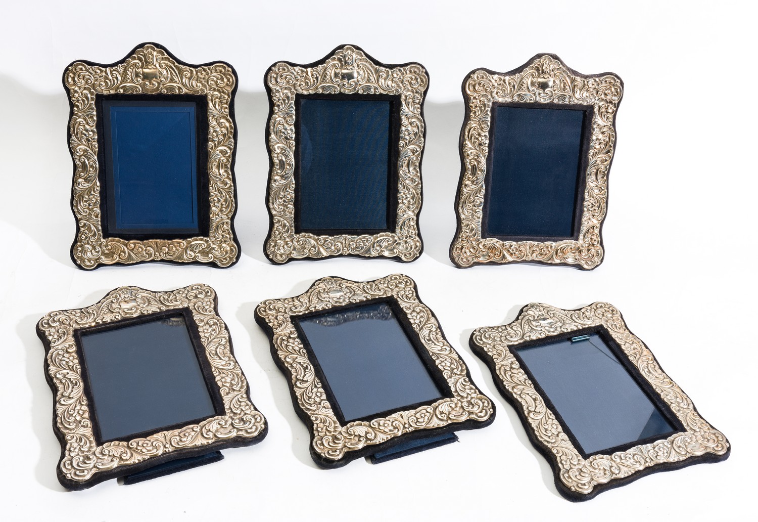 A COLLECTION OF SIX STERLING SILVER PHOTO FRAMES WITH ACANTHUS BORDER MOTIF ( CRACK TO GLASS IN ONE)